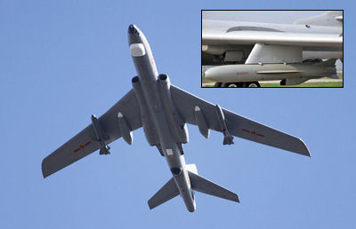 资料图:轰-6型轰炸机可携带大型反舰导弹。