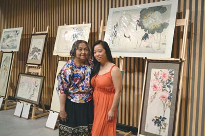 罗思蓉的妈妈(左)前来支持女儿首办个人画展。