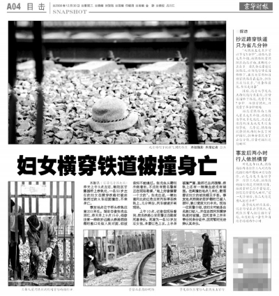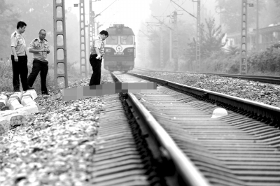 事發鐵路橋上有叁條鐵軌呈南北走向。昨天中午12點多,20多名群眾在鐵軌的柵欄外圍觀,多名警察和身著鐵路部門工作服的人員在現場勘查。死者遺體躺在中間鐵軌的西側,身上蓋有深紅色的毯子。