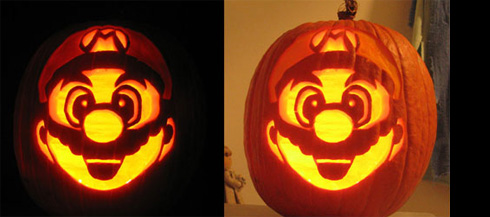 由一个叫Scott Cummins的人制作的立体南瓜雕刻——我喜欢右边那小猫咪,当然,里面点灯之后,估计就不那么可爱了……
