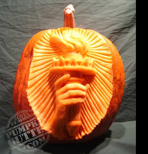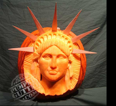 由壹個叫Scott Cummins的人制作的立體南瓜雕刻——我喜歡右邊那小貓咪,當然,裡面點燈之後,估計就不那麼可愛了……