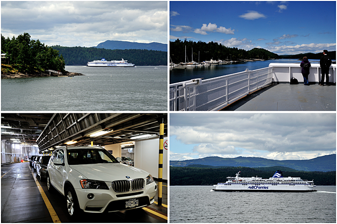 從溫哥華開車至Tswassen碼頭,購買至Salt Spring Island的船票(壹個小時壹班,建議坐早上10點的),車直接開到渡輪上,車在船的肚子裡歇著,你可以坐在船甲板上喝著咖啡眺望著美國境內的雷尼爾雪山。