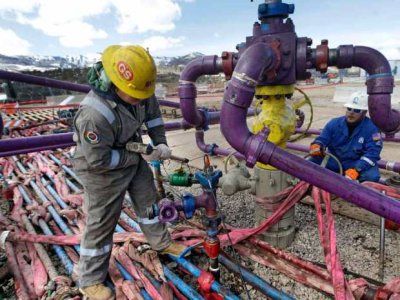 环保智库组织彭比纳指生产LNG会导致碳税大幅上升。图为工人在抽取天然气情形。(加通社)