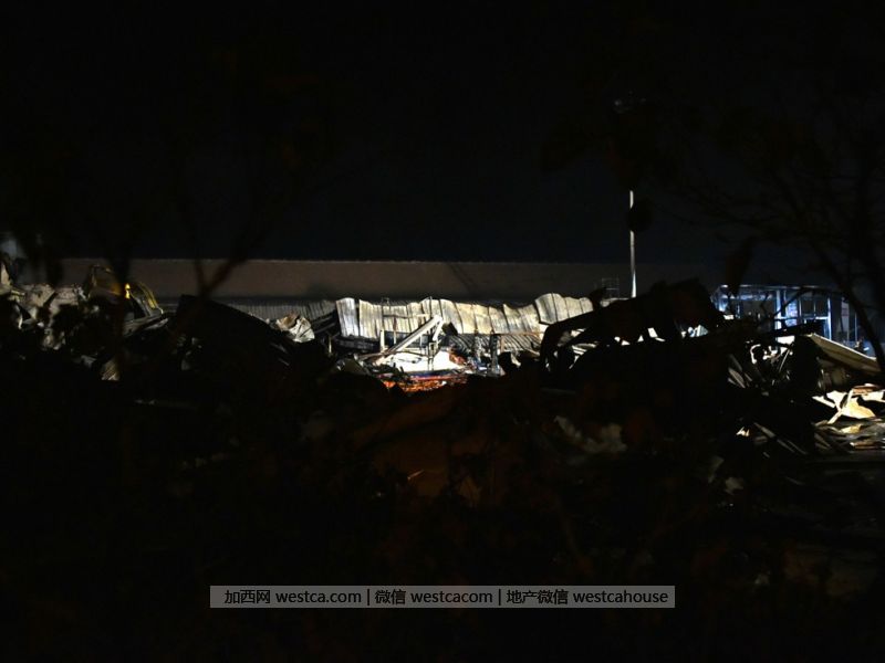 龙源食品有限公司官网显示,该公司建于1998年,固定资产380万元(该官网另有一说法是3,800万元),座落中国胡萝卜第一镇基地中心—化龙镇裴岭村。图为火灾后的厂区一片狼藉。(图片来源:新华社)
