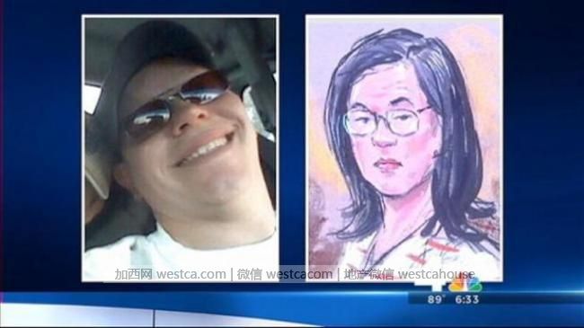 華裔母親劉文靜出庭時的素描(右),左為她分居的丈夫瑞弗洛克。(取材自NBC電視畫面)