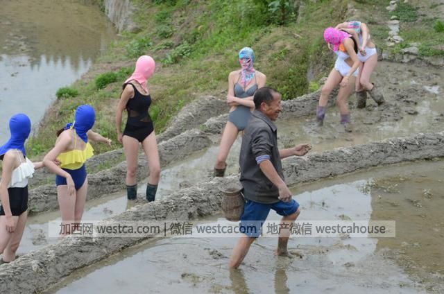 一群着装暴露的女模特,手拿农具和一脸皱纹衣着朴素的农民对比反差强烈。这可能就是组织者拍摄取景的目的,应该是行为艺术的一种吧。不过不少网友表示强烈反对,认为这干扰了农民平静的农耕生活,对朴素单纯的耕者是一种伤害。