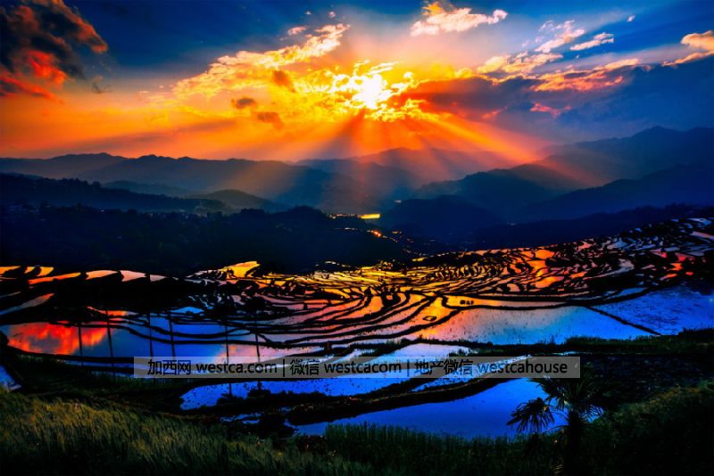 3、红河哈尼梯田文化景观------作为哈尼族创造的农耕文明奇观,据载已有1300多年的历史。梯田规模宏大,绵延整个红河南岸的元阳、绿春、金平等县,仅元阳县境内就有19万亩。这里水源丰富,空气湿润,雾气变化多端,将山谷和梯田装扮得含蓄生动。2013年6月22日,在第37届世界遗产大会,红河哈尼梯田获准列入世界遗产名录。