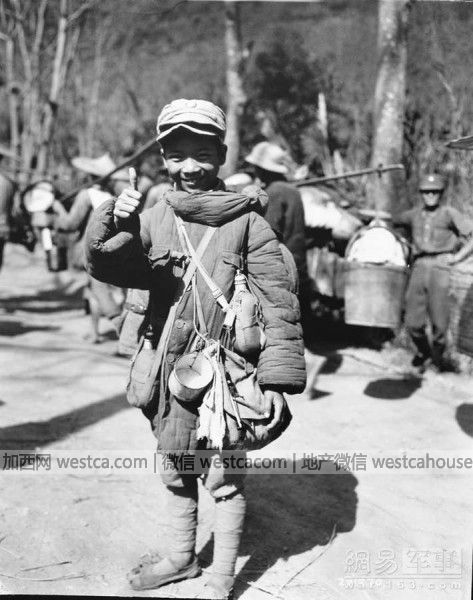 1944年12月5日,这一位重装在身的10岁中国军队士兵,隶属于即将在缅北密支那机场登机空运回国的部队(译者注:中国驻印军新6军)。美军通信兵(U.S.Army Signal Corps)拍摄。