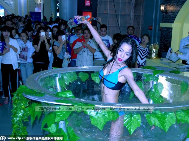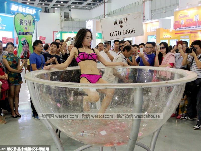 近日,武汉国际会展中心举行秋季房展会。房地产商为炒热人气,请来一名身材火辣的长发妹,在展区表演“洗澡舞”。女子搔首弄姿,先是热舞一番,再跳入展场准备的透明澡盆,往自己身上倒水洗澡。场景吸引大人小孩围观,但网友见此景吐槽连连,斥伤风败俗、想买房都没心情了。甚至有网友评论这是卖房还是“卖肉”?