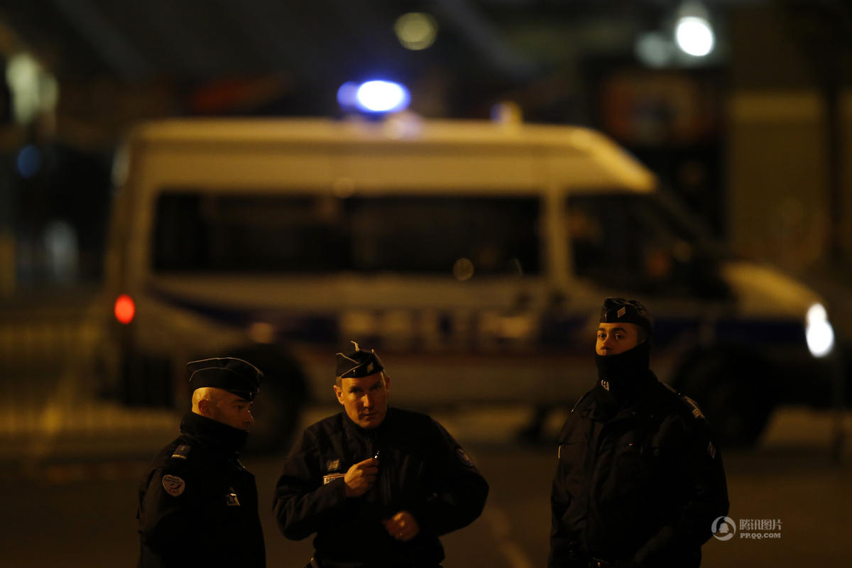 特警在巴黎市中心巴塔克兰音乐厅附近巡逻。