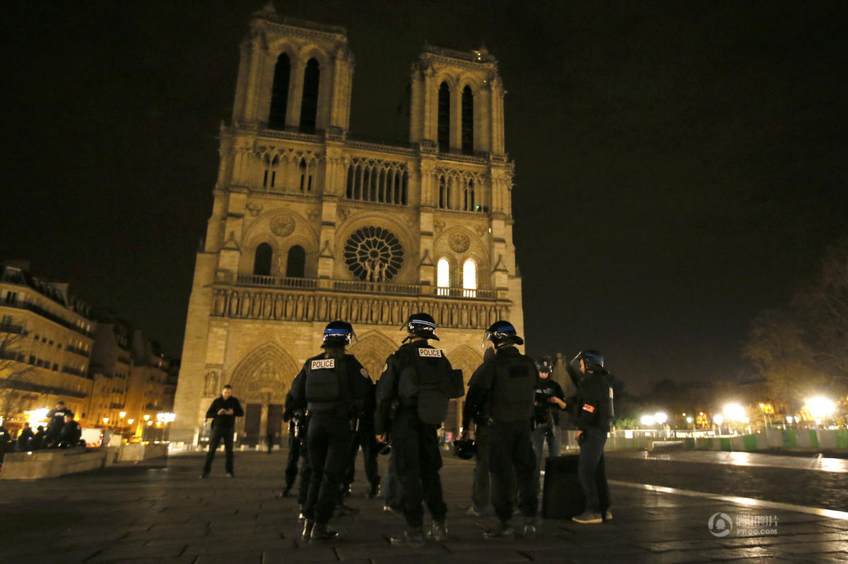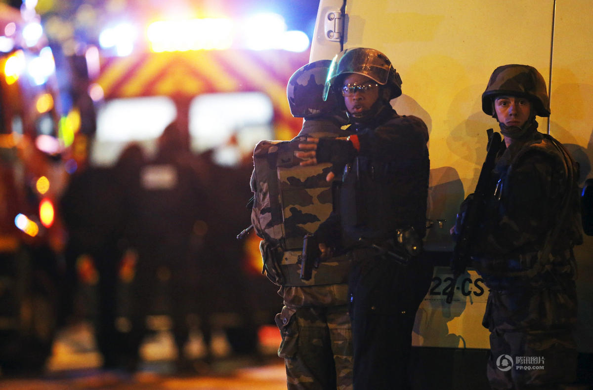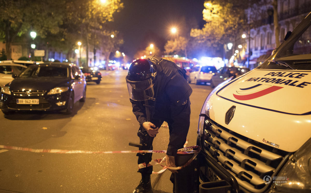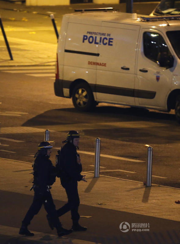 警察在巴黎市中心巴塔克兰音乐厅附近巡逻。
