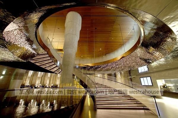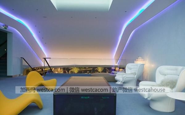 面积相当于10个奥运泳池的休息室分为两层,可同时为1000位旅客提供服务。旋梯下105平方米的巨大水池,与从贵宾室顶端垂吊而下的四层吊灯交相辉映,为宾客们打造出宁静的休息空间。为方便旅客办公,Al Mourjan商务舱休息室配备商务中心,内设会议室、个人上网区,打印机、扫描机等设备。