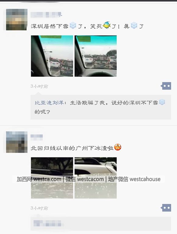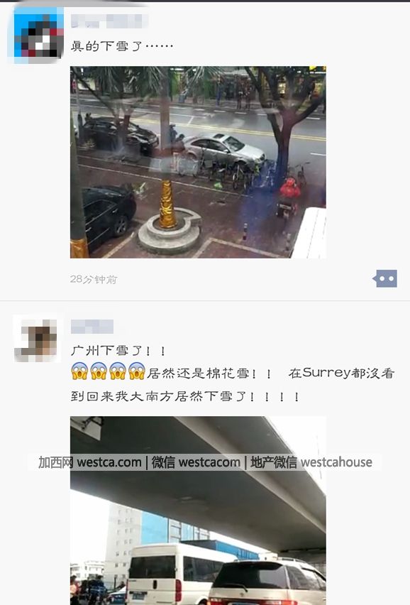 作为广州人,居然有幸体验了一把“故乡的雪”。目前的朋友圈大概是这样: