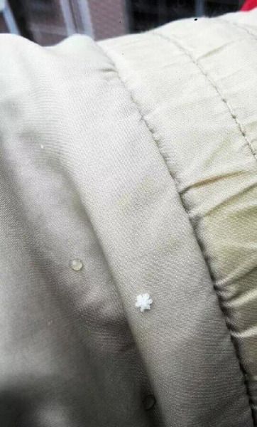 市民衣服上的雪花。