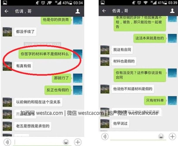 王杰的弟弟展示兄弟俩的对话,其中王杰提到建材“有真有假”(红圈示)。(互联网图片)