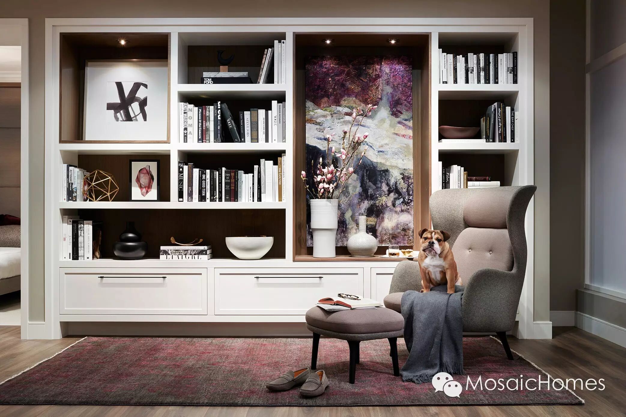 接下来,让我们移步客厅。如何利用室内设计和细节布局来营造一个温馨又温暖的客厅呢?首先是要 “保持开放”,不要用大长排沙发将客厅堵截。CAMBRIA PARK 展示套间中,使用了舒适气派的扶手椅,非常适合于闲暇的午后,取一两本书籍阅读度过时光。其次,最大限度地利用大窗户来吸取自然光线,将您的整个生活从清晨开始便沐浴阳光在下。