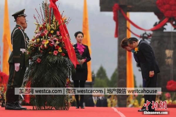 陕西省代省长胡和平恭读祭文:赫奕我祖,人文之光。肇造吾华,大国泱泱。勋绩彪炳兮,懿德与日月同辉;惠泽绵延兮,福祚并江河共长。随后,在场参祭人员向轩辕黄帝像行三鞠躬礼。
