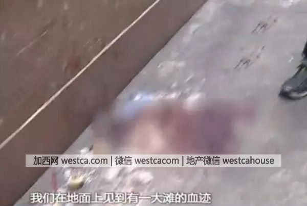 记者来到事发现场,看到地上有一大滩血迹,在墙壁上还能看到喷溅出来的血迹。