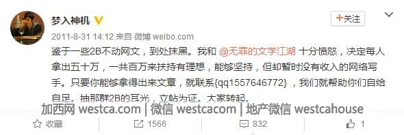 以现在的视角来看,杨魏东算不上网络文学从业者。他的窘境和遭遇,也不能代表任何网文从业者的境况。但杨魏东的遭遇,也折射出网文爱好者在追梦过程中的艰辛。在这种情况下,梦入神机和无罪推出百万扶持计划,虽然被诟病为是为纵横造势,为纵横大神作品收费造势,但依旧具备极为重要的意义!