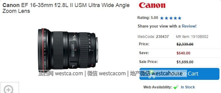 [省钱快报] Canon镜头最高减$2080!摄影发烧友