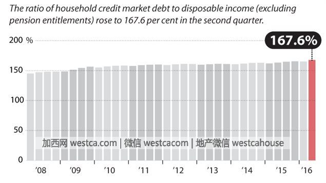 加拿大廣播公司報道說,根據拿大統計局 9月15日公布的數字,2016年第贰季度,加拿大家庭的債務/可支配收入比上升到167.6%, 今年第壹季度的比例是165.2%。