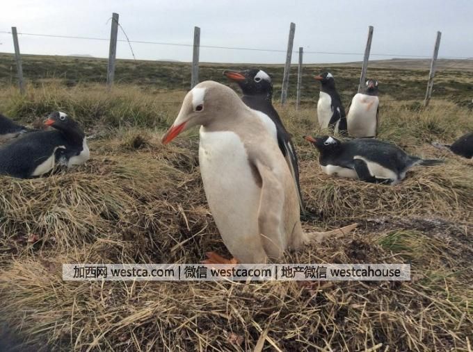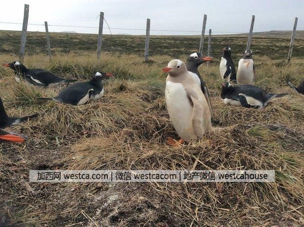 事实上,这只企鹅是白色亚种。很多人以为白色亚种的动物是得了白化病,其实这理解是不正确的。