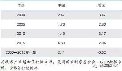 圖 1 中美高技術產業增加值占世界比重(2000-2015年)數據來源:美國國家科學基金會