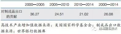 我國高技術產業的發展,得益於高技術產業迅速地融入國際市場。高技術產業出口占工業制成品出口的比重,從2000年的18.98%增至2014年的25.37%(表 9),迅速提高了我國制成品出口的出口質量。同時,高技術產業對於制成品出口的貢獻,2000-2014年為26.08%(表 10),高於其對於制造業增長的貢獻,表明高技術產品出口迅速帶動了制成品的出口。