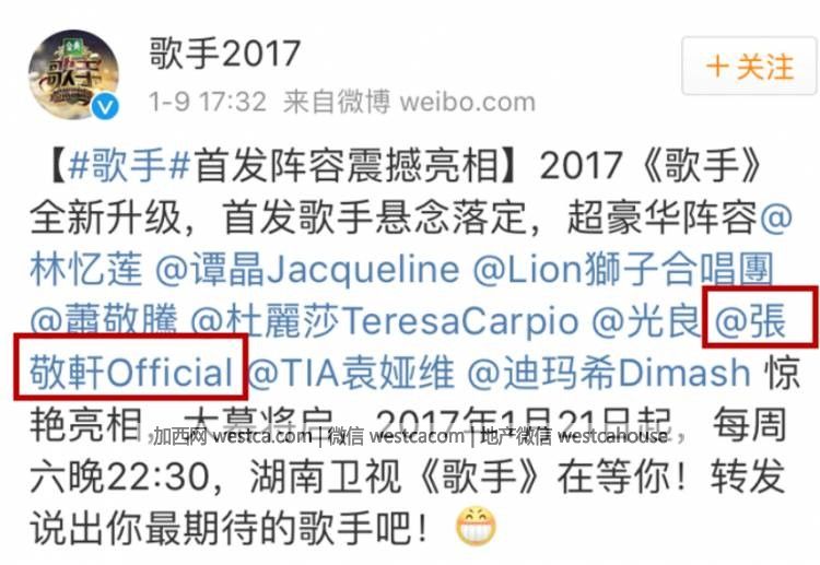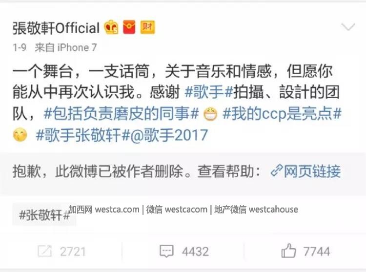 這條是張敬軒轉發官博的,刪了....