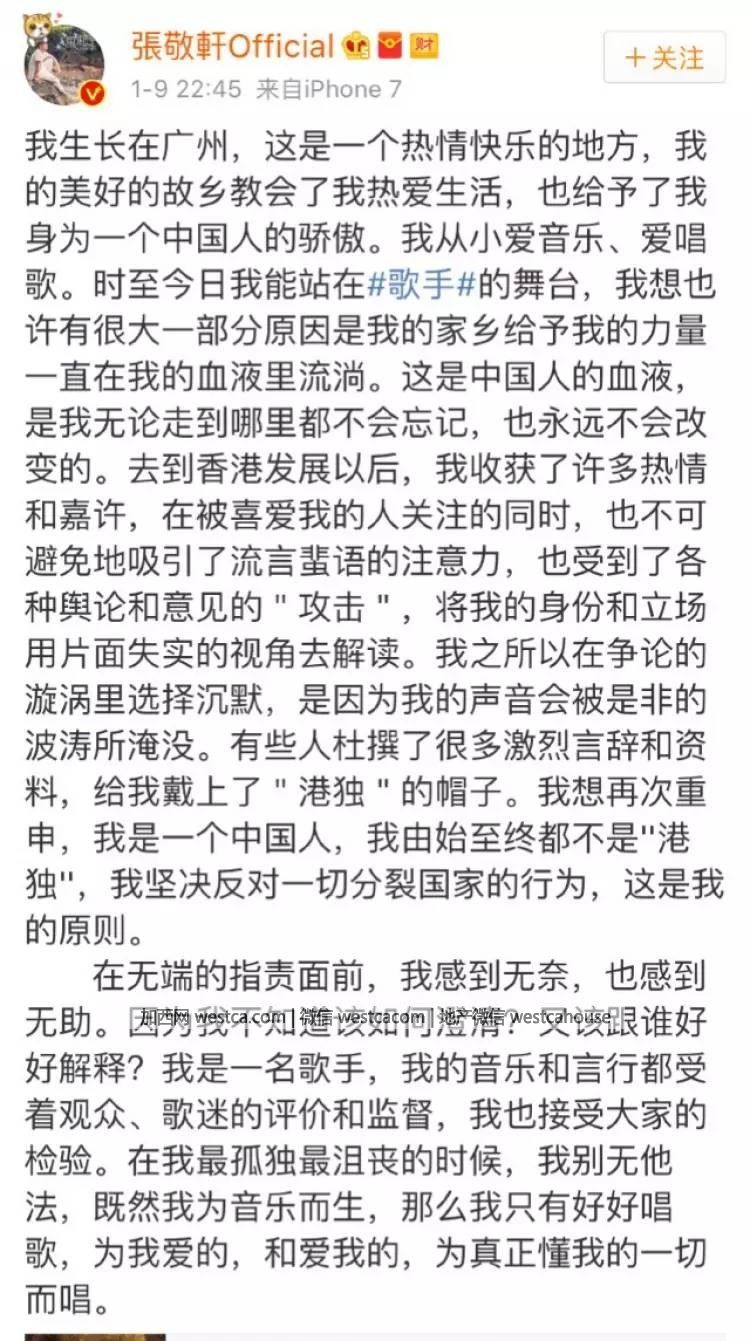 但之後他也發了微博正式澄清,表示自己是中國人,反對分裂。