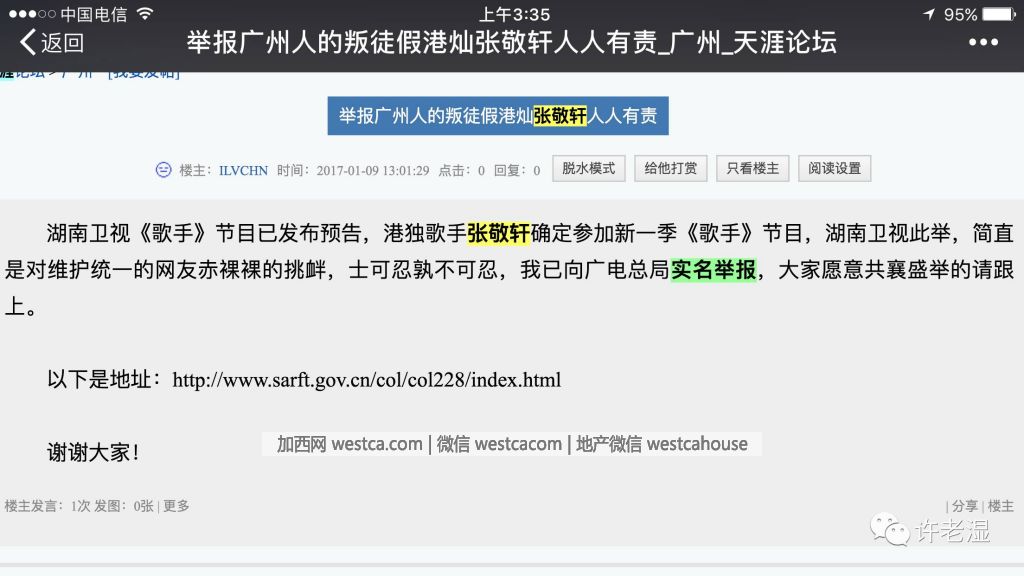 沒想到,去年那場政治余波仍在,很多所謂的愛國人士向張敬軒發難。他們煽動網民給芒果打電話,去廣電投訴張敬軒。▼▼▼