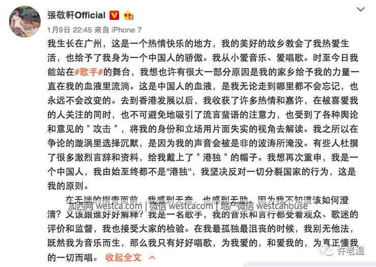 最新壹季,張敬軒自己想明白了,又得導演洪濤傾慕。在封殺和解禁尚不明朗之時,很多人勸洪濤叁思,但他依然堅持自己的選擇,淡定如初的發著微博,給網友普及著張敬軒的音樂造詣和樂壇成績,只是評論中壹句句“港獨”“走狗”“港燦”讓人聽了刺耳,看了茫然。