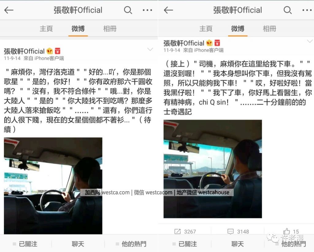 據《南方人物周刊》的采寫,說他開通微博時,認證理由寫的是“香港歌手”。每天都有人問他,“你裝什麼啊,什麼香港歌手啊,不認識你張敬軒嗎?”壹次,他剛說了壹句“終於回到香港了”,評論區立刻有人反彈,“廣州才是你家,不要以為自己是香港人!”