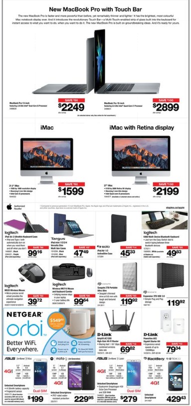 Staples 最新促销海即将闪亮登场,小伙伴们赶快做好功课,准备明天开抢!Staples现在电子产品、家用办公及文具都有降价促销!连购买苹果产品如Macbook都省至$100,小伙伴们都惊呆了!促销期为1.25-1.31。
