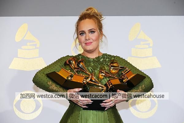 今年,阿黛尔横扫5项格莱美大奖,《Hello》获年度最佳歌曲。 视觉中国 图