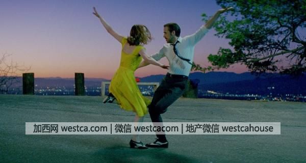 二人初识之晚,高司令和艾玛斯通演绎了一段影片招牌式的路边对舞。导演精心选择了比弗利山附近最无特色的一个路段,平常的路灯,平常的凳子,平常的单车道路面,上面长长的裂缝提醒着政府需要维护了。寻找这样一个最普通的场地大概也像麻将里十三不靠一样并不是想象的那么容易。当然了,大自然和都市免费给予每个人的美景不能打折扣,洛杉矶的夜景和落日的余晖自然是这舞台的最佳底色了。