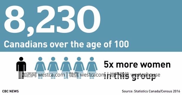 最年长的加拿大人的份额增加更大 - 超过85岁的人增加了19.4%,超过100岁的人增长了41.3%。