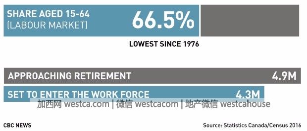 1966年,进入劳动力市场的人口是退休人数的两倍。然而,今天,只有430万加拿大人在15至24岁之间,而490万加拿大人年龄在55至64岁, 这可能会对政府造成压力 。