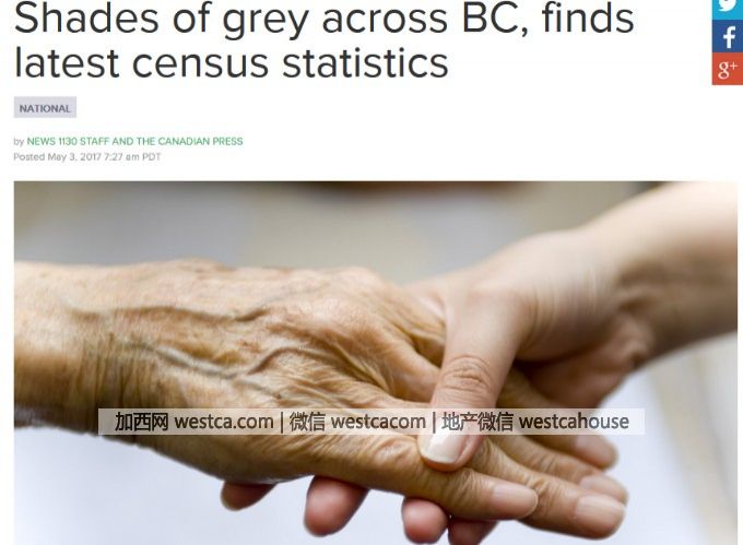 BC省还有4个人口老年化城市,其中3个在温哥华岛:Qualicum Beach(52.1%),Parksville(42.4%),Osoyoos(42.9%)和Sidney(40.9%)。