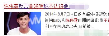 被無視的陳偉霆不知道作何感想,反正君子報仇拾年不晚,雙方你來我往。後來陳偉霆這邊終於憑借《古劍奇譚》中的大師兄熬出了頭,當時被媒體們追著問黃曉明與Angelababy的事,威廉君毫不客氣的回應:不認識他↓