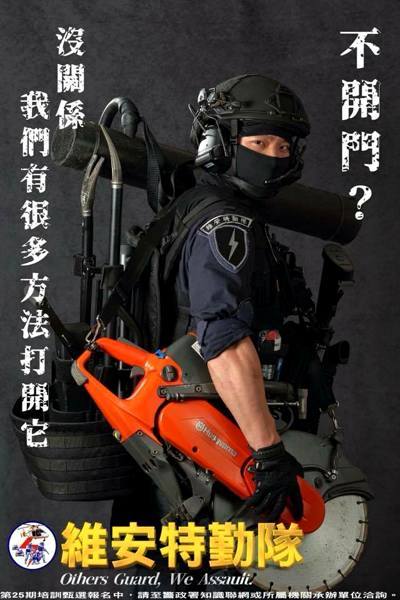 "NPA 署長室"臉書昨分享維安特勤宣傳圖引起討論,其中的"沒有壹發霰彈不能解決的事,如果有,就兩發",以及"不開門,沒關系,我們有很多方法打開它",這兩張照片都遭撤下,讓挺警察的網友大感不滿,網路因此出現要求警政署"恢復照片"聲浪。