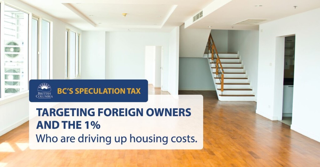 省财政厅长詹嘉路(Carole James)今日宣布房屋投机税的部分细节,强调99%的BC居民是不需要缴纳这笔税款的。