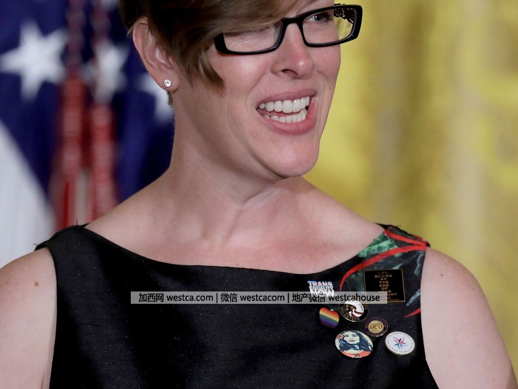 曼寧左肩別著六個不同的徽章,其中包括抗議特朗普壹系列言論、立場的2017年女性大游行徽章,另外還有替跨性別者和婚姻平權發聲的徽章。(圖源:VCG)