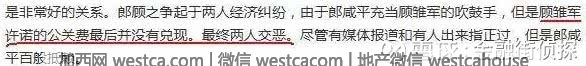 關於兩人交惡,吳丁傑的《郎鹹平真相》壹書透漏,郎鹹平公開質疑顧雛軍侵吞國有資產之前,贰人曾是非常好的關系,直到壹次顧雛軍給郎鹹平的公關費沒有給到位,贰人關系惡化。