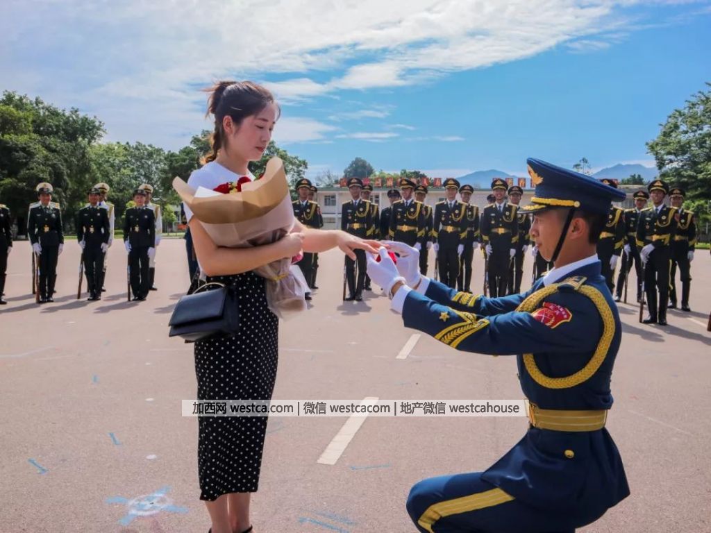 礼兵向妻子求婚 三军仪仗队神助攻