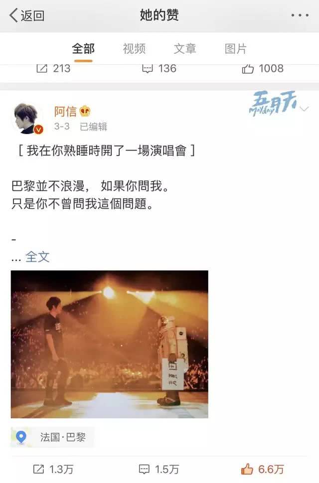 今年3月开始,阿信的微博就进入了暗戳戳发糖的小情书模式。里面写道:「台北时间九点前,平时的你也许早已起床」…那个女生在台北,作息很规律,最关键的是,蔡依林点赞了小情书。