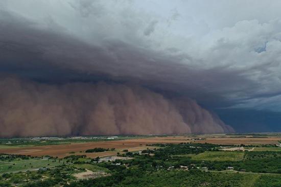 美国德州拉巴克(Lubbock, TX)5日晚间被沙尘暴笼罩,从媒体播出的缩时摄影可见到,大地被一堵沙尘高墙逐渐吞噬。
