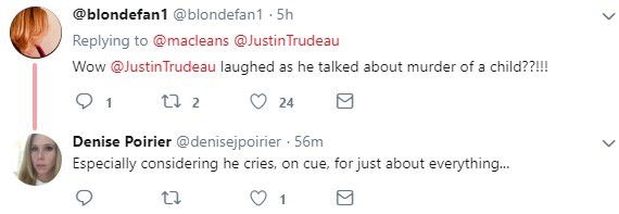杜鲁多谈到女孩被害时的表情时更是惹怒了民众。