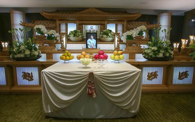 高以翔的靈堂就設在殯儀館對面的金寶軒,這處靈堂是高父幾天前就選定並在高以翔經紀公司方協助下籌備布置好。整個靈堂內景布置簡潔而又典雅大方,靈堂中擺滿了親友、粉絲們送來的花籃。而在靈堂正中,高以翔的遺照隨之曝光。