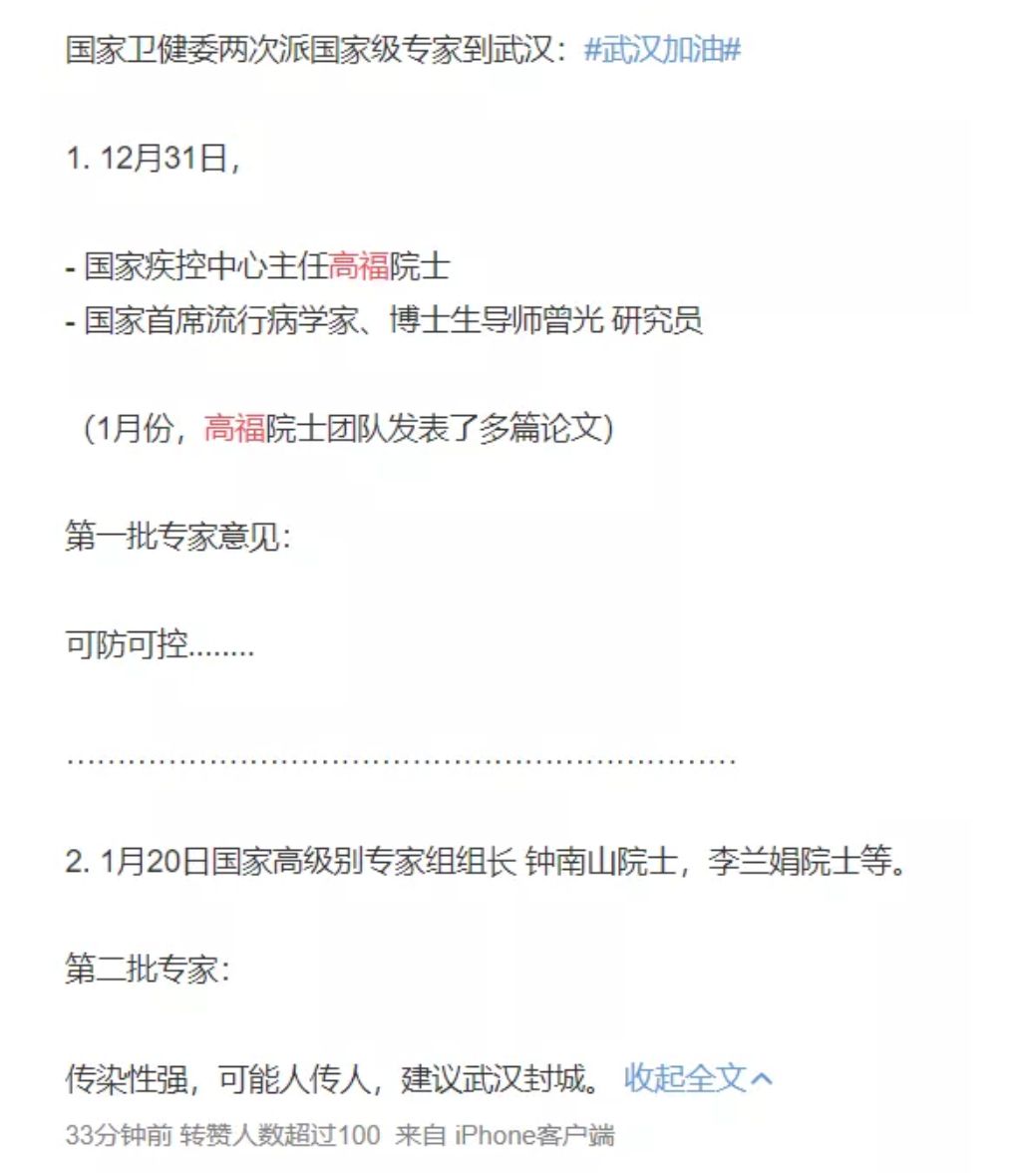 对此,有网友提出了质疑“疫情还没控制,高分SCI文章已经发表”?更有网友比较了两次国家级专家到武汉结论: